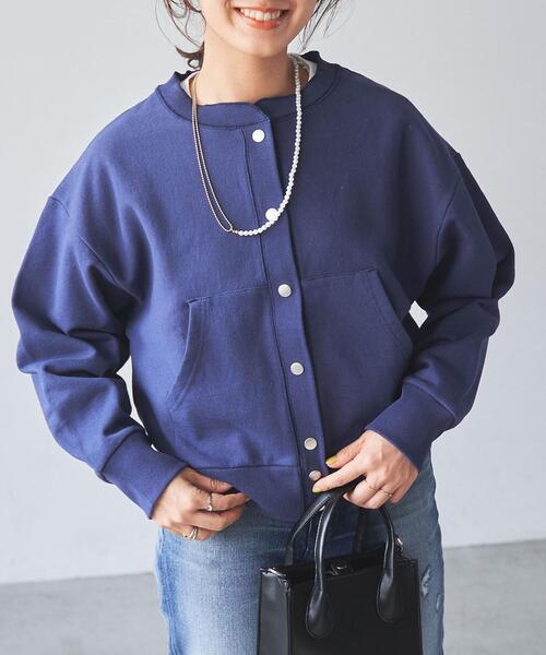~2022 SPRING/SUMMER COLLECTION~ブルゾン感覚で合わせられる同シリーズでドルマンプルオーバー(品番:76206210261)ボックス型プルオーバー(品番:76206210262)Vネックプルオーバー(品番:76206210260)もございます。■デザインカジュアルなブルゾン風の裏毛カーディガン。ニットカーディガンとは違うタイプのカーディガンをお探しの方にお勧めしたい1枚です。袖と裾にはしっかりとリブを使用しフロントのポケットやスナップボタンで本格的なブルゾンのディテールを組み込みました。■素材コットンのヘビー裏毛を使用。しっかりとした厚みと堅さがあるので、カーディガンを超えて、軽アウターとしても活躍が見込めます。■スタイリングブラウスやシャツなどに羽織ったミックススタイルは、スタイリングがカジュアルダウンされ、プリントTシャツやシンプルカットソーに羽織れば、ブルゾン見えするスタイリングに。上からコートを羽織ることもできるので、さまざまなスタイリングに対応する万能な一枚です。透け感:なし生地の厚さ:やや厚い光沢感:なし裏地:なし家庭洗濯:可能(ネット使用)※乾燥機の使用を避け、形を整えて自然乾燥【スタッフ着用コメント】身長:152cm 普段着用サイズ:M 試着サイズ:Mサイズ感:程良いゆったり感の腕周りと短すぎない丈がボトムスも選ばず気軽に羽織りやすいです。素材感:コットン素材で肌触り良く、生地感はしっかりとしているので春の暖かい時期は軽アウター代わりにもなりそうです。【スタッフ着用コメント】身長:164cm 普段着用サイズ:M 試着サイズ:Mサイズ感:身幅はゆったりしていますが、着丈はスッキリしているのでプルオーバーとしても◎素材:厚みがあり、しっかりした生地感です。スウェット素材なので、お手入れのしやすさも嬉しいポイントです!【スタッフ着用コメント】身長:157cm 普段着用サイズ:M 試着サイズ:Lサイズ感:少しゆったり着たかったのでLサイズを着用しました!ゆとりがあり少し襟を抜いて着るのもおすすめです!素材感:スウェット生地で厚みもあり、しっかりしています.。【注意点】※撮影商品はサンプルの為、実際の仕様と異なる場合がございます。※画像の商品は光の照射や角度、お使いのモニター環境により、実物と色味が異なる場合がございます。スタジオ物撮りの画像が実物の色味に一番近くなっております。※予約商品の場合、お届け予定はあくまでも目安となります。生産の都合上、お届け時期が前後したり実店舗入荷時期とずれる場合がございますので、あらかじめご了承ください。品名:ヘビーウラケ スナップ CD 品番:7627-621-0013