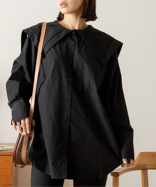 【2022年春夏新作アイテム】 着るだけで決まる大人のビックカラーブラウス。 大人ガーリーな着こなしが叶うセーラーカラーシャツ。 様々なアイテムとのレイヤードや1枚で着てもトレンドライクな着こなしが叶う優秀アイテムです! ●シルエット・ディティール ・大きめの襟が、今シーズンらしいフェミニンな着こなしを演出。 ・長めにとった袖のカフスが、大人らしい上品さをプラスします。 ・カーブを描くヘムラインは、タックインもアウトも様になるデザイン。 ・甘くなり過ぎずに、様々なボトムスと合わせて頂ける一着です。 ・コーディネートに取り入れやすいベーシックカラーの3色にブルーストライプを加えた4色展開です♪ ・襟には、はしごレースを施し、甘すぎない刺繍が大人女性にも取り入れやすい一着。 ・ベーシックな素材感で通年通して長くご愛用頂けるスタンダードなシャツ。 ・シルエットのキレイなシャツでオン・オフで楽しめるマストバイアイテムです。 ●生地感 ・透け感の少ないブロード素材なので1枚で着用可。 ・上品な見た目ながらシワになりにくく、お手入れ簡単なところもうれしいポイント。 --------------- 裏地:なし 光沢感:なし 透け感:なし(ホワイトはあり) ポケット:なし 伸縮性:なし 生地の厚さ:普通 ボタン:あり(開閉可) --------------- ●コーディネート まだ寒い時期は、ニットプルオーバーやカーディガン、ジャケットの中に着て襟を見せるレイヤードスタイルがおすすめ。 暖かくなってきたら、スラックスパンツやデニムに合わせて、ブラウスを主役にしたスタイリングをぜひ。 サロペットやスウェットなどと合わせたMIXコーディネートがおすすめ。 【商品のお気に入り登録】 再入荷通知や、ラスト1点の通知、セール通知を受け取ることができます! 【ブランドのお気に入り登録】 新商品や再入荷、クーポンやタイムセールのお知らせ等、お得な情報を受け取ることができます! 【最短で翌日お届け】 商品をカートに入れた後、注文内容の確認ページで「即日配送」を選択していただければ、最短でご注文した翌日にお届け致します。 ※ご注文いただいた予約商品のお届け時期は、注文履歴ページよりご確認いただけます。 ※他のキャンペーンにより、期間中に価格が変動する場合があります。 ※セールは予告なく終了させていただく場合もあります。 ※モニター環境により、画像の色味と実物の色味が多少異なる場合がございます。
