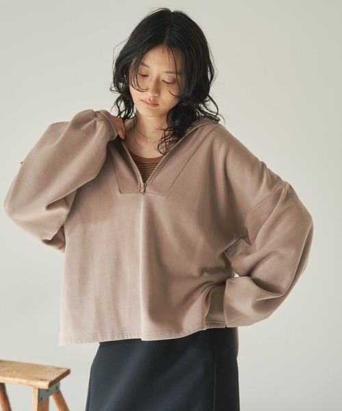 【2022年春夏新作アイテム】 裏起毛のあたたかなハーフジップ仕様のスウェットプルオーバーが登場! ゆったりとしたシルエットで今っぽく着こなせます。 カジュアルコーデとしてタウンユースはもちろん、おうち時間もこなします。 ●シルエット・ディティール ・なめらかで柔らかいスウェット素材に暖かい裏起毛で着心地の良さはもちろん、しっかりと寒さ対策にもなるこれからの季節に重宝する一枚。 ・顔まわりにアクセントができ小顔効果も期待できるジップ付きのデザインでが大人な抜け感をプラスし、 シンプルながらも様になる旬なアイテムです。 ・ジップをあければ、セーラーカラー風に、閉じると、しっかりしたハイネックになり雰囲気を変えて楽しめる1着。 ・ハーフZIPのデザインは、開けると顔周りをスッキリ魅せてくれて締めるとマフラー要らずで冬でもしっかり暖かく着用できます◎ ・袖はトレンドの丸みのあるボリューム袖タイプ。サイドにはスリット入り。 ●生地感 寒い日に活躍する保温性のある裏起毛 -------------------透け感:なし 裏地:なし 伸縮性:あり 光沢感:なし -------------------- ●コーディネート ベイカーパンツやデニムを合わせてカジュアルに、スカートを合わせてフェミニンにと様々なアイテムとの着回し抜群です! 暖かなハイネックとして着たり、衿元を思いっきり開けて抜け感を。 インナーにTシャツを重ねてよりラフにコーディネートを楽しみたい一枚です。 【商品のお気に入り登録】 再入荷通知や、ラスト1点の通知、セール通知を受け取ることができます! 【ブランドのお気に入り登録】 新商品や再入荷、クーポンやタイムセールのお知らせ等、お得な情報を受け取ることができます! 【最短で翌日お届け】 商品をカートに入れた後、注文内容の確認ページで「即日配送」を選択していただければ、最短でご注文した翌日にお届け致します。 ※ご注文いただいた予約商品のお届け時期は、注文履歴ページよりご確認いただけます。 ※他のキャンペーンにより、期間中に価格が変動する場合があります。 ※セールは予告なく終了させていただく場合もあります。 ※モニター環境により、画像の色味と実物の色味が多少異なる場合がございます。 ※他のキャンペーンにより、期間中に価格が変動する場合があります。※セールは予告なく終了させていただく場合もあります。