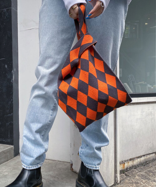 【2022 SS】 Oriens JOURNAL STANDARD コーディネートのワンポイントとして映えるアイテムダイヤモンド柄が特徴的なニットバッグ。 近場のお出かけに気軽にもって行きたい一枚です。 ※取り扱いについては、商品についている品質表示でご確認ください。 ※店頭・外での撮影画像は、光の当たり具合で色味が違って見える場合があります。商品の色味は、スタジオ撮影の画像をご参照ください