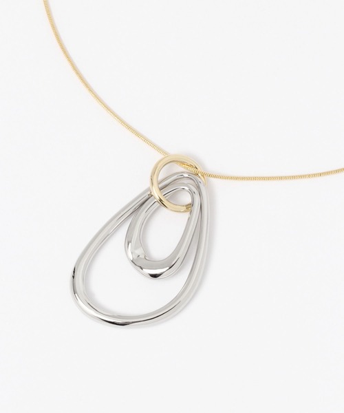 3WAYでパーツの見せ方をアレンジして楽しめるネックレス。パーツを縦に並べたり、1つに通して2つを下に垂らしたり、3つのパーツに通して重ねたりと、その日の気分やコーディネートに合わせた使い分けが可能。シリコンボール仕様なので、長さの調整ができるのもポイントです。