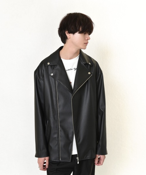 肩線を落としたリラックスシルエットのライダースジャケット。 カジュアルにもモードにも落とし込める、プレーンで飽きの来ないデザイン。裾にはロゴ入りメタルプレートがさりげなく配置。 A,ベージュ B,グレー C,ブラック