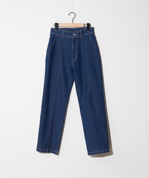 -Design-スラックスを意識したやや細身で美シルエットなハイウエストデニム。 センターのピンタックで美脚がかなう一枚。カジュアルすぎずシンプルに合わせやすいアイテムです。 -Detail- トップスをインしてもきれいに見えるウエストのステッチや、ポケットもよくあるデニムにある形のポケットではなく、スラックスパンツについているような形にしているところにNOMINEのこだわりを感じる事ができる1枚。 後ろポケットにはNOMINEのアイコンとなるようなワンポイントを。 -Cordinate- シルエットがとてもきれいなので、トップスをインでもアウトでも、どんな合わせ方をしてもスタイリングが決まります。 お好みのアイテムとコーディネートを楽しんで。 アイボリー モデル:H161 B76 W60 H82 着用サイズ:Sベージュ モデル:H161 B76 W60 H82 着用サイズ:Mインディゴ モデル:H161 B76 W60 H82 着用サイズ:S