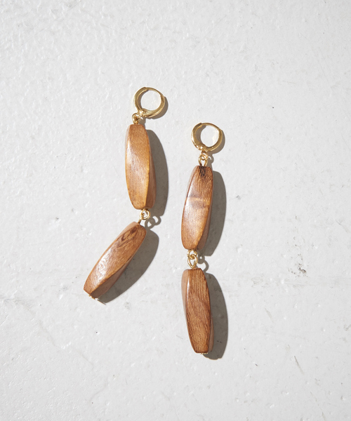 -Design-夏らしいウッドを使ったピアス。カジュアルな素材ですがレーンになった仕様が女性らしいデザイン。 シンプルなコーデにもこのアイテムを身に着けるだけで一気にコーディネートをブラッシュアップ。