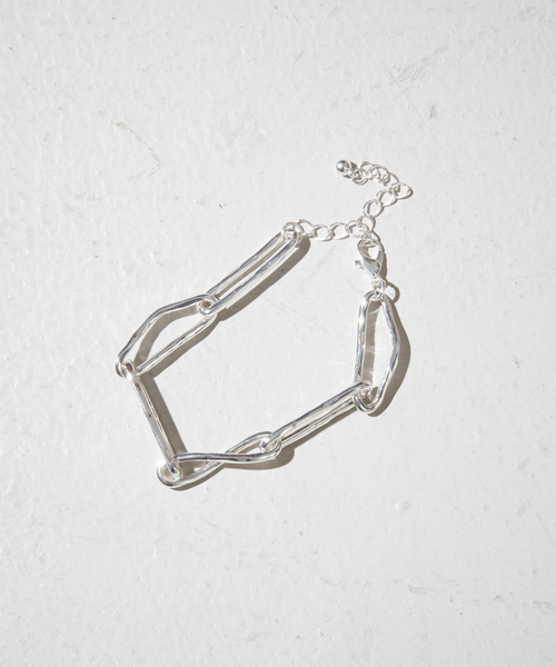 -Design-ランダムなチェーンが組み合わさったブレスレット。 凹凸のあるチェーンがシンプルながらポイントとなり、重ね付けもしやすいデザインとなっています。