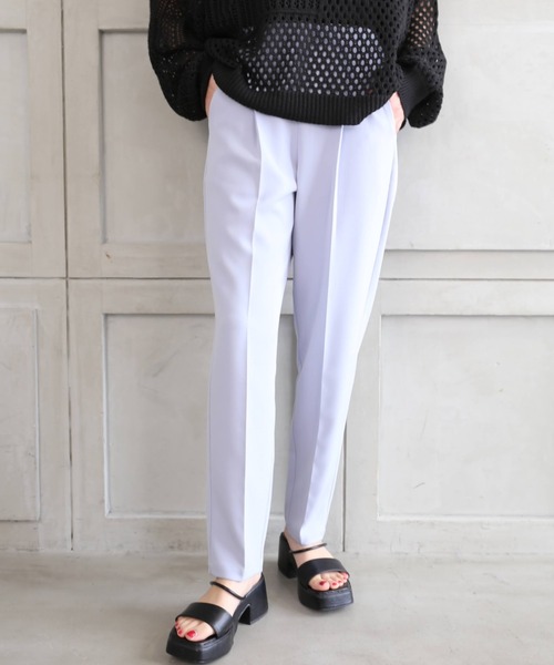 大注目のカラージョーゼットボトムからニュアンスカラーのラインナップが登場!★2022 S/S NEW ARRIVAL★【美脚効果絶大!美シルエットを演出する細みのセンタープレステーパードパンツ♪】◆Design・たてのラインを強調するセンタープレスが入った細身のテーパードで、美シルエットを実現したスラックスパンツ。・大人の女性にぴったりなニュアンスカラーを取り揃えました♪・センタープレスで洗練された雰囲気を演出。シーンを選ばず着用できます。・キレイ見えしながらも、ウエスト後ろがゴム仕様でリラックスな履き心地も◎◆Fabric・とろみと落ち感があり、キレイ見えするカットジョーゼット。・ほどよい厚みとカットジョーゼットならではのやわらかな素材感で、肌をやさしく包み込みます。・シャリ感のあるざらっとしたドライタッチで、熱がこもりにくいので着心地も快適◎◆Styling・キレイ目ニットですっきりと。・カラーバリエーションを活かし、無地teeやロゴTと合せて大人カジュアルにも。・シルエットがキレイなので、ボトムインがおすすめです◎~~~~~~~~~~~~~~~生地の厚み ふつう生地の透け感 アイボリーのみややあり生地の伸縮性 なし生地の光沢感 ややありポケット あり裏地 なしウエストゴム あり~~~~~~~~~~~~~~~※商品画像は着用イメージです。光や角度により、実物と色味が異なる場合がございます。 また、表示のサイズ感も実物とは若干異なる場合もございますので、予めご了承ください。※着用、お取り扱いの際は、商品に付いている品質表示とアテンションタグを必ずご確認ください。 【moment+/モーメントプラス】その瞬間にこの1着と―――より豊かで充実したライフスタイルを目指して、手軽にトレンドかつベーシックな着回せるアイテムをプチプライスで提供していきます。≪お買い物をよりお楽しみいただくために♪≫♡商品のお気に入り登録完売カラーの再入荷通知や、完売間近の通知、セールの通知を受けることができます。♡ブランドのお気に入り登録新商品や再入荷など、いち早くブランドのお得な情報を受け取ることができます。リラクシー/デイリー/ワンマイル/ノンストレス/快適/キレイ見え/映え/大人カジュアル/きれいめカジュアル/女性らしい/オフィス/テレワーク/リモートワーク/シンプル/ベーシック/クラシカル/通年/オールシーズン/美シルエット/ハイウエストパンツ/ピュアホワイト/ビューティシルエット/ビューティーシルエット/カラーパンツ/通勤/通学/学校/デイリー/デート/お出かけ/お買い物/お散歩/旬