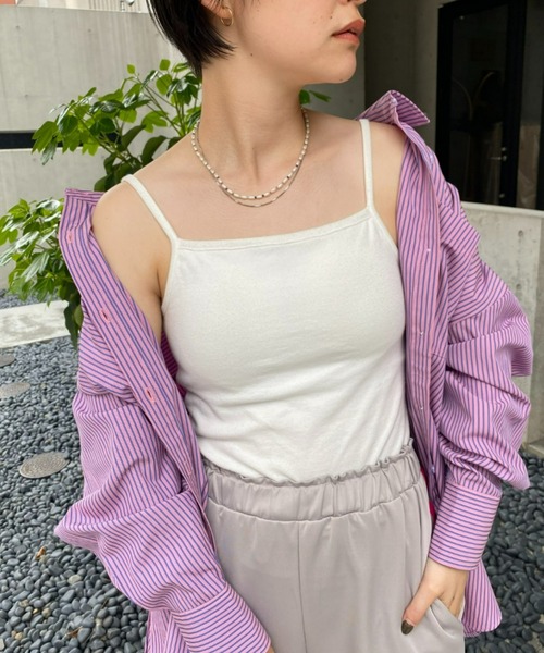 カジュアル好きにちょうどいい肌見せ◎ 安心感のある万能インナー ・程よいホールド力 ・細い紐で合わせやすい ・動いても安心のスクエア型 【生地・デザイン】 カジュアル好きにも合わせやすいオススメのカップ付きインナー。 程よくホールド力があるので、動いても安心。 Vネックのインナーだと女らしくなりすぎて気になる、という方も多いですが、スクエア型は見えても透けてもOKです。 着やすいカラーバリエーションなので、ご自宅で過ごすのにもオススメです。 【コーディネート】 程よい肌見せが叶うインナーなので、ざっくり編みのオーバーサイズカーディガンに合わせて。 シアー素材とも相性抜群なので、シャツやニット、ブラウスなど、カジュアルに女度をプラスしてコーディネートしましょう。 【お買いものをよりお楽しみいただく為に!!】 ▼商品のお気に入り登録 お気に入りアイテムの完売カラーの再入荷通知や、ラスト1点の通知、セールの通知も受け取ることができます。 ▼ブランドのお気に入り登録 新商品や再入荷など、クーポン配布などのお得な情報を受け取ることができます。