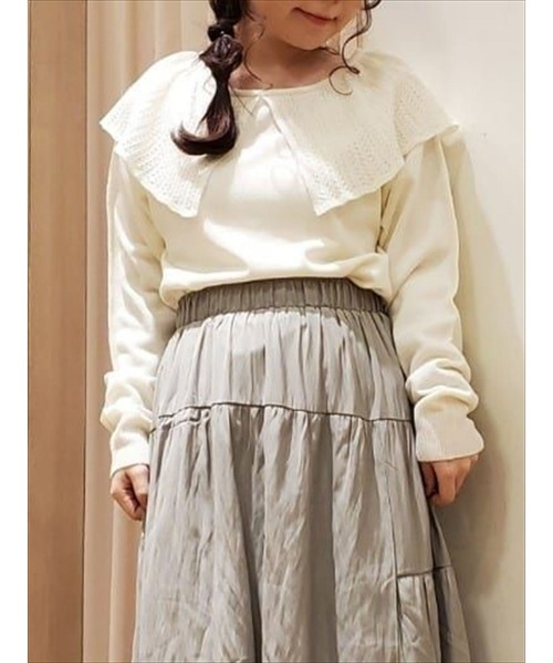 ざっくりと大きめな透かし編み衿が目を惹くニット。 360度どこから見ても可愛らしさをアピールしてくれます。 衿ぐり広めなクルーネックが首元をすっきりと、やや短めの着丈でボトムスともちょうど良いバランスに仕立てました。 パンツやスカートにも相性が良く、幅広いスタイリングを楽しめます。