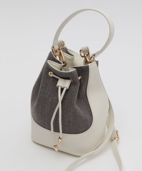 ーーー バッグの新調におすすめの巾着型2WAYBAG コロンとした上品なフォルムがチャーミングな、フェイクレザー×ファブリックのコンビの2WAYBAG。 ーーー 【スタイリング】 フェイクレザーとファブリックのコンビなので、通年で持ちやすいデザインになっています。 巾着型のフォルムも今っぽく、シンプルなコーディネートにプラスするだけで新鮮な気持ちでお楽しみいただけます。 【素材感】 春らしいアクセントになる、ホワイトのフェイクレザーを使用しました。 また、ブラックのファブリックはゼブラのジャカードでトレンド感◎