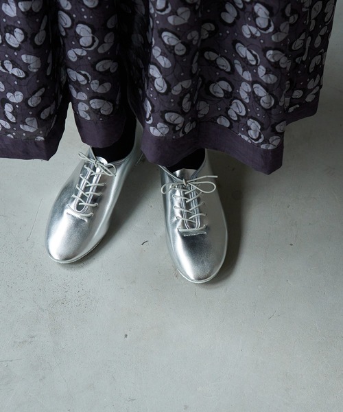 cat worth(キャットワース) イギリスの由緒あるダンスシューズブランド、cat worth(キャットワース)。職人がひとつひとつ丁寧に制作したダンスシューズ。スニーカーのように履ける気軽さも魅力。 シンプルかつ無駄の無い洗練されたデザインでどんなコーディネートにも馴染みます。 ------------------------------------------------------------------- 素材は、軽く柔らかい上質なカーフ(子牛)レザーを使用しています。カラーはブラックとホワイトのに加えてシルバーが仲間入り。 柔らかい質感のシルバーは、派手すぎずさり気なくポイントになる合わせやすいカラーです。 肌に触れる淵の部分は、布でパイピングされています。インソールにはゴールドでロゴが印字され、上品な印象です。 とても軽いソールを使用しているため、驚くほど軽い履き心地。ダンスシューズと聞くと薄くて地面を感じるソールをイメージしますが、こちらは程よく厚みのあるソールなので、長時間の着用でも疲れにくいです。かかと部分はすこしだけヒールがあるので歩きやすく、見た目もスタイルアップ! 英国の有名バレエ団やアカデミーのダンスシューズにも選ばれているcat worth。 一度履いたら足取りも軽やかになるような、心躍る一足です。 ※天然素材を使用している為、元々の傷などがある場合がありますが、素材の特性としてお楽しみいただければと思います。 レザー製品につき水に弱いので、雨の日は避けてご使用ください。 ※撮影場所の違いで色味が異なって見えていますが、着用画像が実際の色味になります。 ---------------------------------------------------------------------- 【AMB100貨】 ひと・もの・ことがぐるりと巡り さまざまな場所で出会った「良いもの」をお届けするオンラインの百貨店です。 Clean/unique/cheerfulをテーマに私たちが選んだ様々なジャンルのものを、 そのまわりにあるストーリーと共にご紹介しています。 ---------------------------------------------------------------------------- ※撮影画像は、光の当たり具合やモニターの環境により色味が違って見える場合があります。あらかじめご了承ください。 ※取り扱いの注意については取り扱い表示をよくご確認の上、着用をお願いいたします。