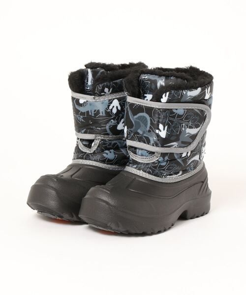 Parade SELECTION かわいらしいプリントが特徴の子供スノーブーツ 防水(※)・防滑の高性能ながら軽量で使いやすいスノーブーツの登場です。 恐竜柄のかわいらしいメルヘン柄なプリントが特徴です。 履き口はベルクロ仕様で脱ぎ履きもラクラク。 ダウン調のアッパーは内ボア仕様になっており、寒い日でもあったか♪ ソールは驚くほどの軽量ですが防滑仕様になっています。 ※防水機能は4cm4時間防水となっています。 【カラー展開】 男の子(恐竜):ブラック、グリーン