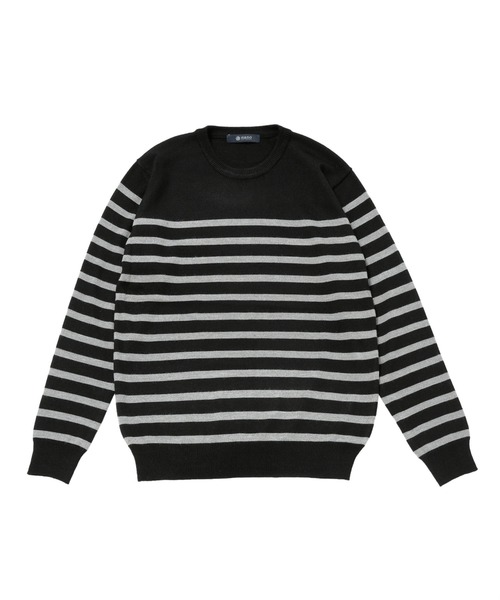 nano・universe(ナノ・ユニバース) 高級感ある光沢が特徴的なベーシックニット。大人向けのレギュラーフィットでジャケットインにおすすめ。カジュアルにパネルボーダーで展開。