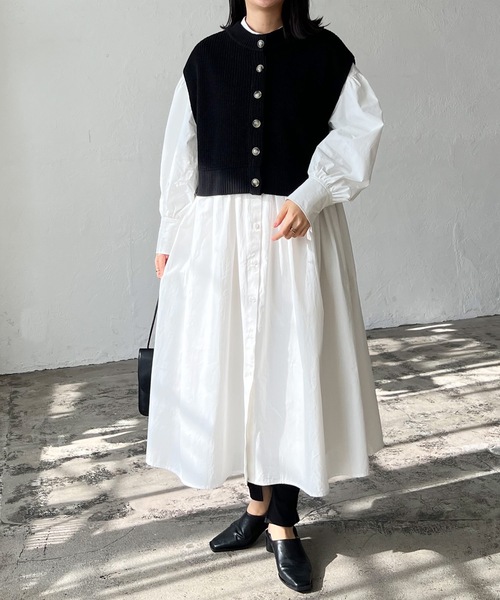 ニットベストとシャツワンピースのお得なセットアイテム 【デザイン】 旬のレイヤードスタイルが楽しめる、ニットベストとシャツワンピースのセットアイテム セットで着るだけでコーディネートをワンランクアップしてくれます ベストは前後2WAYで着用可能 ロングワンピースはゆったりとしたオーバーサイズとボリュームスリーブで単品使いでも楽しめます それぞれ別々で着用できるのも嬉しいポイントです 【素材】 ベスト:しっかり見えながらふっくらとしたソフトな仕上がりのニット シャツ:程良いハリ感がありきれい見えするブロード素材 ------------ 裏地 なし 透け感 シャツややあり 伸縮性 ニットベストあり 光沢 なし ポケット なし 洗濯方法 手洗い可 ------------ 【スタイリング】 ニットとシャツ地がカジュアルな印象なので、スニーカーで外してもブーツで引き締めても◎ 単品でも着用可能でいろんなコーデが楽しめる一着 きれいめからカジュアルまで幅広くマッチするアイテム ロンTなどのトップスにベストを重ねて別雰囲気のレイヤードスタイルも楽しめます ▼もっとお買い物を楽しんで頂く為に▼ 〈商品のお気に入り登録〉 お気に入りの登録をして頂きますと セールの通知・ラスト1点になった時の通知や、再入荷通知を受けることができます。 〈ブランドのお気に入り登録〉 新商品の発売や再入荷、タイムセールやクーポン発行のお知らせなど Lianがお届けするお得な情報を受け取ることができます。