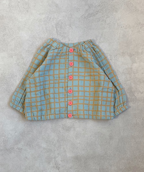 【CALMiA】 ☆柔らかガーゼ素材♪♪ 前後で2通りのコーデが出来ちゃうブラウス☆春にピッタリのブラウスが登場♪♪ ボタンが前、ボタンが後ろ、2通りのコーデが出来ちゃう万能アイテム! 首元にゴムが入っているので、ボタンを閉めたままでも簡単にお着替え出来ちゃいます◎ 袖口にもゴムが入っているので、お袖が落ちてくる心配ナシ☆ ボタンがカラフルなのも可愛いです!! ベビーギフトにもオススメ♪ 同素材のブルマパンツもご用意しています。 セットアップも出来ちゃいます!! (商品名:ダブルガーゼブルマパンツ/お問合せ番号:0041721004) ※ブルマパンツはFREEサイズ(70cm~80cm)のみの展開となります また、同素材のワンピースもございます。 お姉ちゃんとのお揃いコーデも可能です♪♪ (商品名:ダブルガーゼシャーリングワンピース/お問合せ番号:0040921015) [柄について] プリントデザインの並び位置などが、商品1点ずつ異なります。 お選びいただくことはできませんので、予めご了承くださいますようお願い致します。