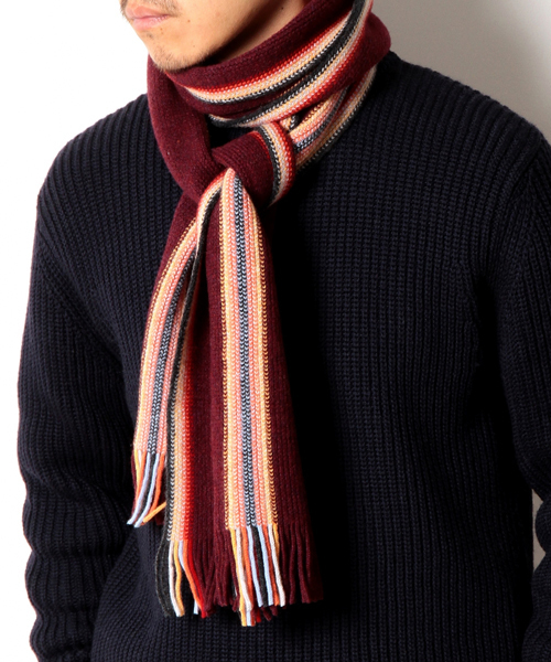 両端とセンターにラインがデザインされた、シンプルながらもスタイリッシュなマフラーです。カラーリングはシックにまとまり、オンオフを問わず幅広いシーンに活躍します。ラフな一巻きでも存在感があり、ワンポイントに最適です。たっぷりのフリンジで動きも演出します。 店舗にてお問い合わせの際は、全国のBEAUTY&YOUTH 各店舗まで下記の品番をお申し付け下さい。 品名:BYscotland 3LINE MUFF 品番:1436-399-1651
