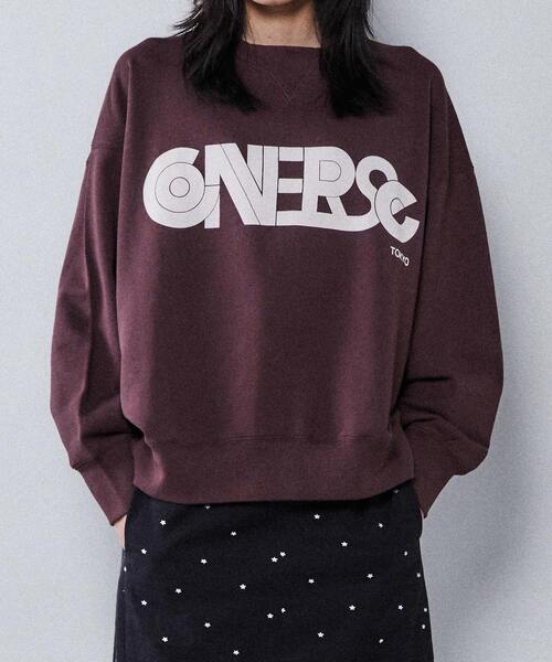 80年代風のレトロなロゴとカラーリングがポイントのクルーネックスウェット。 ゆとりを持たせた袖や、計算されたオーバーシルエットで、さらりと着るだけでこなれ感のあるワンランク上のカジュアルスタイルに。 細身のパンツからフレアスカートまで様々なボトムスと相性のよい着丈でバランス良く着こなせます。 ベーシックなスウェット素材を使用した、シーズンレスで心地よく着られる一枚です。 ------------------------------------- 透け感:なし 裏地:なし 伸縮性:あり 光沢感:なし 生地の厚さ:普通 -------------------------------------