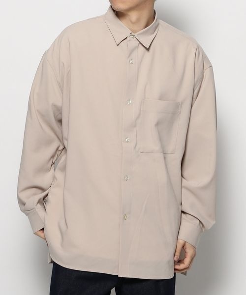 ◇素材 シックアンドシンの糸を使用することで、天然繊維のTOP糸のようなメランジ感を表現した素材です。 クリアな表面感とさらっとした肌ざわりが特徴で、シワになりにくいのでケアも簡単です。 ◇デザイン レギュラーカラーシャツをオーバーサイズに仕上げ、 アクセントに背中には切り替えを付け、アウター見えの要素をプラスしています。 ボタンを開けると羽織としても使えるアイテムです。 ◇スタイリング BIGシルエットなので腰回りもしっかりカバーでき 細身のパンツやデニムなどボトムを選ばすにマルチに着こなしていただけます!!