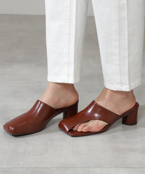 サムカバーがモードな雰囲気のミュールサンダル。着こなしに合わせやすい程よい肌見せデザインがポイントになります。スクエアトゥと甲を覆ったすっきりとしたシルエットが大人な印象に見せてくれます。パンツにもワンピースにも相性抜群で今季らしい表情を叶える一足です。