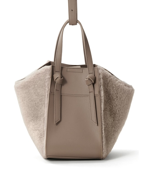 異素材をMIXしたデザインがドラマティックな雰囲気を生む。 ふんわりしたボア素材がシーズンムードを盛り上げる。 遊び心をプラスしたノットデザインがポイントに。 フェイクレザーはスタイリングを格上げしてくれる。 ★内ポケット:オープンポケット1個付き ★付属ショルダーベルト1本。 ★ショルダーベルトは長さ調節可能です。