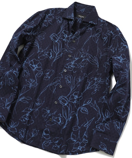 【爽やかなフラワープリントシャツ】ブロックチェック状の小紋ジャガードの生地に、立体的なWラインで表現されたフラワープリントのシャツです。爽やかなカラー展開とマッチした、大人のためのシャツです。 【素材・デザイン】 コットン100%のメンズビギオリジナルフラワープリント生地は、高級感のある優雅な雰囲気を演出します。カッタウェイシャツなので襟の角度が広く、さらに小さな襟が特徴です。第一ボタンを外したときも襟の自重で潰れにくくなり、スッキリした首回りをキープします。羽根襟裏、カフス裏、下剣ボロにネイビーシャンブレー無地の別地を使用しており、一枚で主役級のアイテムとして活躍してくれます。 【コーディネート】 主役柄なのでパンツはシンプルなものを。スラックスやセンタークリース入りのきれいめパンツをチョイスして。小物使いにも気を使った都会的なスタイリングがおすすめです。カッタウェイシャツなので、クールビズシーズンにもおすすめです。 【カラー】 爽やかでコーディネートを選ばない『ホワイト×ボルドー』、『ホワイト×ブルー』 爽やかさと誠実な印象の『ネイビー×サックス』 【サイズ表記に関して】 商品タグにはサイズ部分に数字が表記されています。 01はSサイズ, 02はMサイズ, 03はLサイズ, 04はLLサイズを表します。 モデル 身長184cm 胸囲95cm ウエスト78cm ヒップ94cm 着用サイズ:03(L) ※着用画像は光の加減等で仕様が異なる場合があります。 ※着用画像はサンプルのため仕様が異なる場合があります。