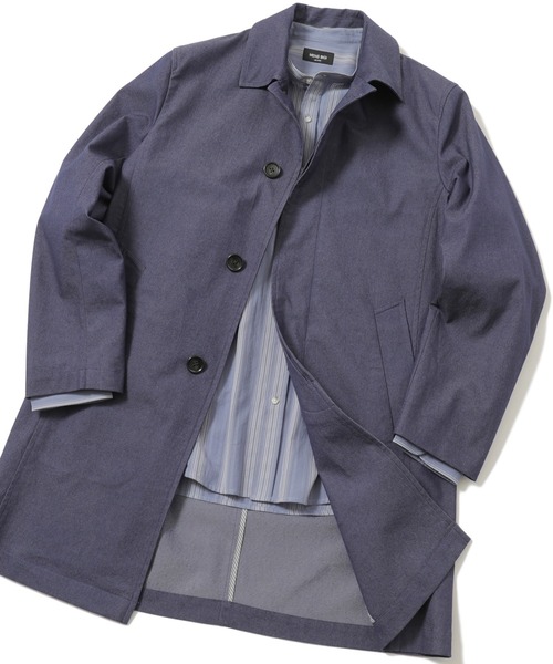【カジュアルな流れの今だからこそバルカラーを纏う】余分な付属品を省いたメンズビギの新しいミニマムコート。撥水加工&ストレッチが効いた生地から作られた、さらっと気軽に羽織りたいスプリングコートです。【ACTIVE TAILOR】様々な機能を有したテイラードコレクション。ビジネスからカジュアルまで、様々なシーンで快適に着用できるウェアです。【素材・デザイン】撥水加工を施したストレッチ性の高い生地を、バルカラーコートという最も汎用性が高い定番アイテムに落とし込みました。軽量でストレスフリーな着用感はON/OFF両面で活躍してくれます。【カラー展開】柔和で清潔感のある『ベージュ』スタイリッシュさを演出できる『ネイビー』ボトムスには、スラックスからカーゴパンツ、デニムまで違和感なく決まります。【サイズ表記に関して】商品タグにはサイズ部分に数字が表記されています。01はSサイズ、 02はMサイズ、 03はLサイズを表します。モデル 身長184cm 胸囲95cm ウエスト78cm ヒップ94cm 着用サイズ:03(L)※着用画像は光の加減等で仕様が異なる場合があります。※着用画像はサンプルのため仕様が異なる場合があります。