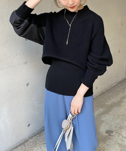 トレンドのスタイリングが作れるショート丈ニット 商品ポイント ・今人気のショート丈のニットとインナーのセットアイテム ・ニットは袖の下部分が布帛に切り替わっており、すっきり着られる ・短めの丈感が脚長効果をプラス ・これ1つでレイヤードスタイルが完成する万能アイテム ・程よい厚みで今の時期から春先まで長く着られる スタイリングポイント ・ハイウエストのボトムスにインナーをインしてすっきり着るのがおすすめ ・トレンドのマーメイドスカート合わせで女性らしく ・ニットはお手持ちのシャツやロンT、ワンピースに合わせても◎ ********************** 透け感:なし 裏地:なし 伸縮性:あり 光沢感:なし ********************** ▼洗濯方法 ドライクリーニング ※撮影場所やお使いのモニター環境により若干お色味が異なる場合がございます。 特にロケの撮影では明るく見える傾向にございます。 ※商品はサンプルで撮影をしております。若干の仕様が変更になる場合がございますので予めご了承の上ご注文くださいますようお願いいたします。 ▼商品のお気に入り登録 完売カラーの再入荷通知や、ラスト1点の通知、セールの通知も受け取ることができます。 ▼ブランドのお気に入り登録 新商品や再入荷など、いち早くブランドのお得な情報を受け取ることができます。