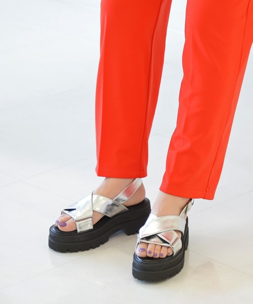 夏の定番スポーツサンダルがトレンドのトラックソールデザインになって登場。ボリューミーなシルエットはこの春夏もマスト!程よい高さのトラックソールがスタイルアップを叶え、トレンドライクな雰囲気へと仕上げてくれます!太めに仕上げたクロスベルトがしっかり足をホールドして安定感も抜群です。春先は透け感のあるシアーソックスやラメソックス、メッシュソックスを合わせて履くのがおすすめです!カジュアルにも甘めコーデのハズシにも活躍。ストリート感漂うデザインはあえて甘めなブラウスやワンピースとコーディネートしてバランスを取るとオシャレ。フレアパンツとトラックソールで更に脚長効果を狙えます!ボリュームのあるトラックソールで自然にスタイルアップが叶い、太めのクロスベルトは安定感もあるので長時間のお出かけも安心。★おススメPOINT★●トラックソールが新鮮なスポーツサンダル。●太めに仕上げたクロスベルトは安定感があり◎●カジュアルにも甘めコーデのハズシにも幅広く活躍するデザイン。●カラーはシンプルなブラックとホワイトに加え、コーディネートのポイントになるシルバーの3色展開。 ★スタッフ着用コメント★ STAFF:みなみ 甲高:高め 甲幅:広め 普段履くサイズ 24.5CM (LLか3Lサイズ) 足長:23.2CM 足囲:23.3CM 足幅:10.2CM LLサイズを試着しました。 幅広のわたしでもゆったりと履くことができました! ただベルトが少し緩めなので、1サイズ下にするかベルトの穴を増やして調整するのがいいかなと思います! クロスベルトが可愛く、夏にぴったりな1足です♪ STAFF:まる 甲高:普通 甲幅:普通 普段履くサイズ 23.5CM (Mサイズ) 足長:23.4CM 足囲:23.4CM 足幅:9.2CM M,Lサイズを試着しました。 ソックス合わせで試着Mでピッタリでした。 素足でもそこまでサイズ感の変化は無かったのと、バックルである程度調整できるので問題ないと思います。 生地感も柔らかく、靴ずれしにくそうな印象です。 春先はソックス合わせで履いても可愛いデザインだと思いました。 STAFF:紫 甲高:高め 甲幅:広め 普段履くサイズ 23.5CM (LかLLサイズ) 足長:23.0CM 足囲:23.5CM 足幅:9.6CM 膝下:40CM 膝上:31CM 身長:157CM サイズ的にはMサイズでピッタリでしたが幅広・甲高の為、 歩くと幅・甲が当たって痛かったのでLサイズにしました。 Lサイズだと1㎝ぐらい余裕が出来ますが、ストラップを短くすれば問題なしです。 ▼商品のデザインやお客様の足の形により、感じ方に若干の個人差があります。▼モデル着用写真は撮影環境により、多少実際のカラーと異なる場合がございます。 ☆NOFALLsango ZOZOTOWNお買い物ガイド☆お買い物をよりお楽しみいただく為に ▼商品のお気に入り登録 💛をクリック!完売カラーの再入荷通知・お気に入りアイテムの値下げ・ラスト1点などの通知をお知らせいたします。 ▼ブランドのお気に入り登録 💛をクリック!新商品や再入荷などお得な情報を受け取ることができます。