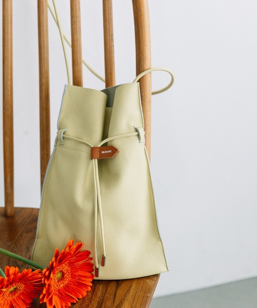 <価格改定のお知らせ> 2022/12/20より原価高騰に伴い価格改定をさせて頂きます。 商品タグに記載している価格につきまして、旧価格のものが混在している場合がございます。 ご了承下さいますよう、お願い申し上げます。 ◉薄マチのトレンド感を取り入れた巾着バッグ◉ ・身体にフィットして持ちやすい、長財布も入るサイズ感 ・レザー本来の質感を楽しむために口元は1枚革になった仕様 ・背胴には差込ポケットが付いている ・ヌメ革のタグがポイント♪ ・ショルダーは内側で結んで調節可能 ・内ポケット オープン×1、ファスナー×1 ーBEAURE/ヴュレ(ビュレ)ー Beau…美しい Realiser…実現 BEUAREが提案するのは ベーシックとトレンドを取り入れた遊び心のあるデザイン やわらかさが特徴のオリジナルレザーがアイコン 「シンプルで長く愛せるものと、新しさとの出会いを大切に」を コンセプトにしたブランドです ※この製品は独特な風合いを出すために特殊な加工を施しています。 細かい傷や汚れ、色はげは、製品本来のものですのでご理解ください。 この製品に使用されている素材は、摩擦や汗、雨などによる水濡れにより色落ちし、 色移りする可能性があります。 白色や単色系の洋服等のとの組み合わせは注意してお取り扱い下さるようお願い致します。