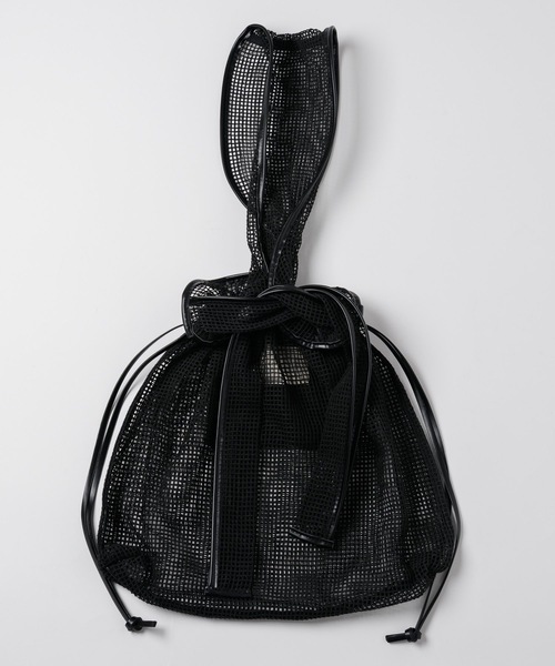 夏らしいメッシュ素材にレザーのパイピングが施された巾着型BIGバッグ。たっぷり入る大きいデザインが嬉しくメインでもサブとしても活躍してくれます。 メッシュ素材を活かし色や柄の巾着やポーチをINして遊んでも◎