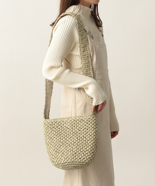 【デザイン】ざっくりと編まれたペーパーの細編みワンショルダーバック。開き口にはマグネットスナップが付きで、内側には小物などが入れられるポケットが付いており機能面も◎なアイテムです。とても軽く柔らかいので手軽に持てる春夏にぴったりなデザイン。コーデのワンポイントとしても使え、タウンユースからリゾートシーンまで幅広く活躍すること間違いなし!