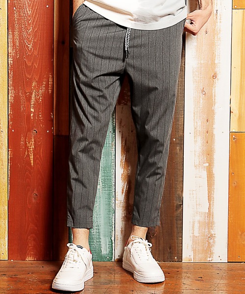 新作のストライプイージーパンツ レーヨンとポリエステルを掛け合わせたツイル素材を使用した新作パンツ。レーヨンのしなやかさとポリエステルのコシを併せ持ち、 さらに伸縮性素材を加えることで、履き心地が良くパンツに最適化されています。 ウエストゴムでストレスの少ない穿き心地もポイント! 合わせるアイテムによって、きれいめスタイルにもカジュアルスタイルにも着こなせる万能なパンツです。 【画像に関するご注意】 ※画像はサンプルです。仕様が変更になることがありますのであらかじめご了承ください。 ※商品の色味につきまして、お客様のお使いのPCのモニター環境、設定により実際のカラーと画像の色味が違って見える場合が御座います。予めご了承の上、ご注文下さい。 ※屋外での撮影画像は光の加減で、実際の商品より明るく見える場合が御座います。商品の色味は生地アップ・スタジオ撮影の画像をご参考下さい。