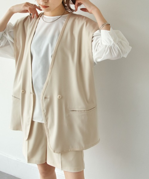 トレンドのレイヤードスタイルにピッタリなベストが登場!アームホールはレイヤードしやすいよう大きめに調整しており、ボリュームスリーブのアイテムなどとのレイヤードも◎動くたびにふんわりと揺れるドレープ感が大人可愛い印象をプラス。バックスリット入りで動きやすく、サッと羽織れる軽やかさにも注目。ストレッチ性があり、リラックスして着用できるのもポイントです。Model 165cm サイズFREE着用とても軽く、ストレッチ性があり、とても着やすいです。年中レイヤードで使えるような素材感です。Model 162cm サイズFREE着用サラっと羽織りやすかったです。ゆったりしたサイズ感で、たくさん着まわせるアイテムです。【お買い物をお楽しみいただく為に】▼商品のお気に入り登録完売カラーの再入荷通知や、ラスト1点の通知、セールの通知も受け取ることができます。▼ブランドのお気に入り登録新商品や再入荷等、いち早くブランドのお得な情報を受け取ることができます。