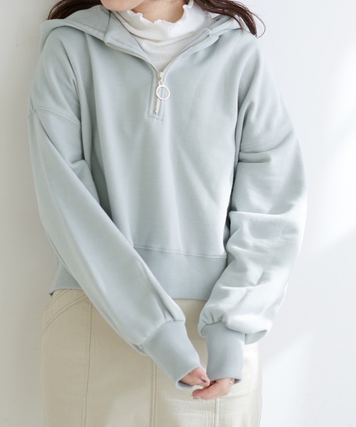 【2022SS natural couture】トレンドライクなデザインに大人レディな色味をプラス◎ハーフジップショート丈プルオーバー■Design トレンドのハーフジップデザインに、大人レディな要素をプラスしたオリジナルな1着。ゆったりとしたアームラインにややボリュームを加え、腕周りの華奢見せ効果と、カジュアル見えしすぎない女性らしさをプラスしました。マーメイドシルエットやフレアラインのスカートにシンプルに合わせたり、キャミワンピースやジャンパースカートにレイヤードしてもマッチしやすいショート丈に仕上げました。■Styling 女性らしいシルエットのスカートにウエストアウトでシンプルに合わせるだけて決まります。お好みで、ハイネックインナーをレイヤードして頂いても雰囲気の違いを頼んで頂けます。今季はワンピースの上からレイヤードして頂くのもおすすめ◎■Fabric ポリエステルとコットンの混合地を採用。着心地の良さに加え、ご自宅でのお手入れも楽にして頂ける1品です。季節を限定せず、ロングシーズンお召し頂けるカラーリングでお作りしました。===============透け感:オフのみやや透け感あり裏地:なし伸縮性:ややあり光沢感:なし生地感 :身体馴染みの良い生地感===============【お気に入り登録でお得な情報がいっぱい】・「商品のお気に入り登録」で再入荷通知や、ラスト1点の通知、セール通知をいち早く受け取ることができます。・「ブランドのお気に入り登録」で新商品や再入荷など、お得な情報を受け取ることができます!