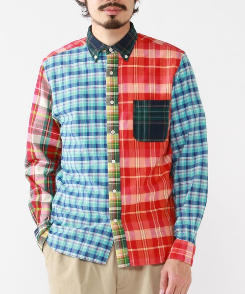 インディアンマドラスの鮮やかな彩り インド南東部の地方(現チェンナイ)で織られる伝統的なマドラスチェックを使用した<BEAMS PLUS> ボタンダウン シャツ。生地は、手染め後に織り上げ天日干しされた、軽さのある独特の質感が特徴です。 パターンは1960年代に生産されていたアメリカ製のボタンダウンシャツがベースになっており、脇縫いは細幅(3mm)の本縫い、全体的な縫製の運針(3cm間)は18本の設定となっています。全ての工程は日本国内の工場にて、熟練した職人の手によって仕上げられています。両脇の裾部分には+マークのカン止めがポイントとして入り、<BEAMS PLUS>らしいアクセントになっています。 ※この製品は、デザイン性を重視し、インドの素材を使用しています。 ・素材の特性上、ネップ(糸が部分的に太くなっている部分)、色ムラ、プリントのずれや織りムラなどが見られます。 ・色合い、風合い、サイズが一点一点微妙に異なります。また、多少のゆがみやシワ等も生じています。 ・素材の性質上、摩擦(特に湿った状態での摩擦)や、汗や雨などで濡れた場合、他の衣料やバッグなどの身の回りのものに色落ち、移染することがあります。淡色のものと重ねたり、洗濯の際に他の衣類と一緒にすると移染する場合がありますので、十分ご注意ください。 Model:H178cm W63kg Size:M ※撮影環境による光の当たり具合やパソコンなどの閲覧環境によって、実際の色調と異なって見える場合があります。あらかじめご了承ください。商品の色調は、白背景の商品単体で撮影した画像をご参照ください。 BEAMS PLUS / ビームス プラス ”長年着られる飽きのこない本物の男服”をコンセプトに、次世代へと続くカジュアルウェアのオーセンティックを追求しています。
