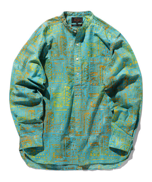 インパクトのあるバティックシャツ目を惹くバティック柄が特徴の<BEAMS PLUS>バンドカラーシャツ。インド製の伝統的な蝋けつ染めによる多色染の存在感あるファブリックです。バンドカラーのプルオーバーシャツは、ヨーロッパのヴィンテージワークウェアをベースにしており、リラックス感のあるゆったりとした印象です。※画像と同じ生地を使用しておりますが、柄の配置は1点ずつ異なるアソートです。柄のご指定はお受けできかねます。あらかじめご了承ください。・素材の性質上、摩擦(特に湿った状態での摩擦)や、汗や雨などで濡れた場合、他の衣料やバッグなどの身の回りのものに色落ち、移染することがあります。淡色のものと重ねたり、洗濯の際に他の衣類と一緒にすると移染する場合がありますので、十分ご注意ください。モデル H 178cm W 63kg Size:M※撮影環境による光の当たり具合やパソコンなどの閲覧環境によって、実際の色調と異なって見える場合があります。あらかじめご了承ください。商品の色調は、白背景の商品単体で撮影した画像をご参照ください。BEAMS PLUS / ビームス プラス”長年着られる飽きのこない本物の男服”をコンセプトに、次世代へと続くカジュアルウェアのオーセンティックを追求しています。
