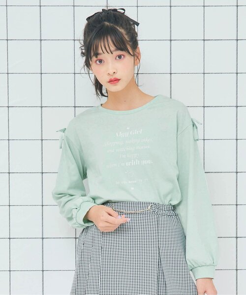 ALGY(アルジー)の長袖Tシャツ「袖りぼんロンT」は、流行に敏感な女のコの日常を可愛く、甘く彩るデザインが人気!1枚で着ても重ね着してもGOOD!サイズXXXS・・・115~125cmXXS・・・125~135cmXS・・・135~145cmS・・・145~155cmM・・・155~165cm