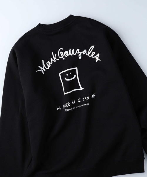 プロスケートボーダー兼アーティストであるマークゴンザレスのスウェットクルーネックトレーナーです。 フロントはワンポイントでバックプリントの手書きアートワークが旬の雰囲気を醸し出します。 ボディはもちろん大きめで、ストリートな着こなしにもってこいのアイテムです。 素材はCVCで綿80/ポリエステル20の裏起毛なので着心地が良いです。 バックプリントはBIGアートプリントの仕様で大変お勧めの一着です。 スウェットクルーネック全ての商品にマークゴンザレス手書き風ステッカーが別々の柄で付いています!