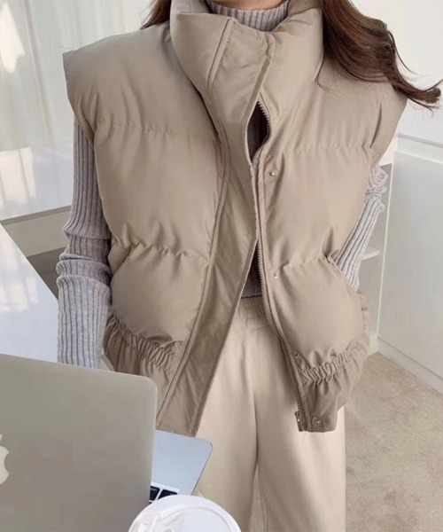 \好評につき新色追加/ グリーンが仲間入り! ボリュームのあるころんと可愛いシルエット♡ ヘムギャザーがスタイルアップなパフフェイクダウンベストが登場! ■ Point ・ころんとまるいシルエットがかわいい中綿フェイクダウンベスト。 ・軽いのに暖かい。お布団と纏っているかのような着心地がストレスフリー。 ・スタンドハイネックでモードカジュアルなニュアンスをプラス。 ・ペプラムのようなウエストギャザーがスタイルアップになり、メリハリのあるコーデを演出します。 ・マンネリ化しがちな秋冬コーデも取り入れるだけでトレンド感アップ◎ ■ Fabric 軽い着心地ながら暖かいフェイクダウンの中綿キルティングナイロン素材。 ■ Coordinate ・トレーナーやスウェットパンツの上下セットアップに1枚羽織ってショートブーツを合わせた海外風のストリートファッションや、ニットにデニムを合わせたカジュアルスタイルに。 ・トレーナーにショートパンツを合わせてロングブーツを履いたトレンドフェミニンスタイルにも。 ■ Color ホワイト(白)、ブラック(黒)ベージュ、グリーン、ブルーの5色展開 【生地感】 -------------------------- 裏地:あり 透け感:なし 生地の伸び:なし 光沢感:ややあり ポケット:あり -------------------------- 【me+em select (ミームセレクト) ZOZOTOWN お買い物ガイド】 ▼商品をお気に入り登録▼ 完売商品の再入荷やラスト1点の通知、セール開始時にお知らせ! ▼"me+em select (ミームセレクト) "をお気に入りブランドに登録▼ 新商品や再入荷など、ブランド最新情報をいち早くお知らせ! 是非、ご活用いただきお買い物をお楽しみください◎ ■撮影はサンプル品を使用しており、表示のサイズ感も実物とは若干異なる場合もございますので、予めご了承ください。 ■他のキャンペーンにより、期間中に価格が変動する場合があります。 ■セールは予告なく終了させていただく場合もあります。 ■ご覧のモニター環境や撮影環境により実際の商品と多少色味が異なって見える場合がございます。 ご理解の程よろしくお願いいたします。