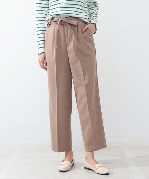 ■デザイン 裏起毛素材の暖かみのあるワイドパンツです。 センタープレス入りでキレイ目なシルエットになっています。 共生地のベルト付きも嬉しいポイントです。 無地2色、チェック柄1色の3色展開です。 ※ポケット数:横×2 ■生地感 裏起毛生地はキックバックも良く、リラクシーな履き心地をサポートします。 ※裏地なし 【サイズ】 大きいサイズ(LL)の展開あり。 ※04(LL)サイズはWEB限定サイズです。 ■スタッフ着用コメント まだ寒いけど、春を意識したコーディネートにしたい時にはこのパンツがおすすめです! 軽やか且つ裏起毛素材で暖みがあり、センタープレスと落ち感がキレイなのでスッキリしたシルエット。 チェック柄は白ベースなので爽やかな印象です。 ワイドパンツが苦手な骨格ウェーブの私ですが、このワイドパンツはハイウエストなので、バランス良く履けました。 ■スタイリング 目を惹くチェック柄は白ベースなので、冬コーデのパンツをこちらに帰るだけで春を先取りしたコーデになりますよ! 着丈の短いトップスや、トップスをインする事で、バランスよくスッキリ見えします。 キレイ目シルエットなので、ベーシックなブラックとベージュはお仕事や行事ごとにも使えそう。 こちらの商品は主に春に着用いただける商品です。 モデル情報:身長168cm B78 W58 H84 着用サイズ:02(M) 店舗へのお問い合わせ商品番号:741-64011 ●製品寸法: 02(M):W64~74cm H90cm 股下64cm 前股上33cm 渡り幅31cm 裾幅21cm 付属ヒモ全長168cm 付属ヒモ幅2.5cm 03(L):W67~77cm H92cm 股下65cm 前股上33cm 渡り幅33cm 裾幅22cm 付属ヒモ全長172cm 付属ヒモ幅2.5cm 04(LL):W70~80cm H94cm 股下66cm 前股上33cm 渡り幅35cm 裾幅22cm 付属ヒモ全長175cm 付属ヒモ幅2.5cm 備考: