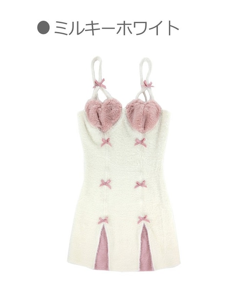 かわいいだけじゃ物足りない 甘辛MIX最高峰となる新作ワンピース 伸縮性高く肌なじみのいいニット素材を使用 ボディラインを惜しみなくアピール ハート型のもこもこバストカップも Bobon初となる大胆チャレンジ 縦ラインにリボン&バイカラーの フェイクスリットデザイン どことなくSweet要素を投入 1枚だと存在感MAXゴージャスヒロイン レイヤードコーデでも楽しめるから スタイリング自由度も結構高い 「ミルキーホワイト」と「ベビーピンク」の2色展開