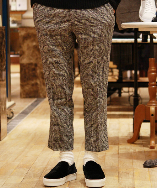 EDIFICE(エディフィス) 主張感のあるグレンチェック、チョークストライプ、シャドーチェックの3バリエーションのクロップドパンツ。トラディショナルな雰囲気がありながらもウエスト部分にダーツを入れ、クロックプドにすることで都会的な雰囲気を持った一着になっています。同生地のジャケットも展開しており、セットアップで合わせたスタイリングなど、幅広いコーディネートを楽しめるアイテムです。(商品番号:5720000 リングパターンストレッチ3Bジャケット) 店舗にお問い合わせの際は下記の品番、商品名を スタッフにお伝え下さい。 品番14030320600130 商品名リングパターンストレッチ1ダーツトラウザー model H181 B79 W73 H81 着用サイズ:44 model その他10 H174 B73 W75 H82 着用サイズ:44 model マルチ H175 B73 W71 H80 着用サイズ:44