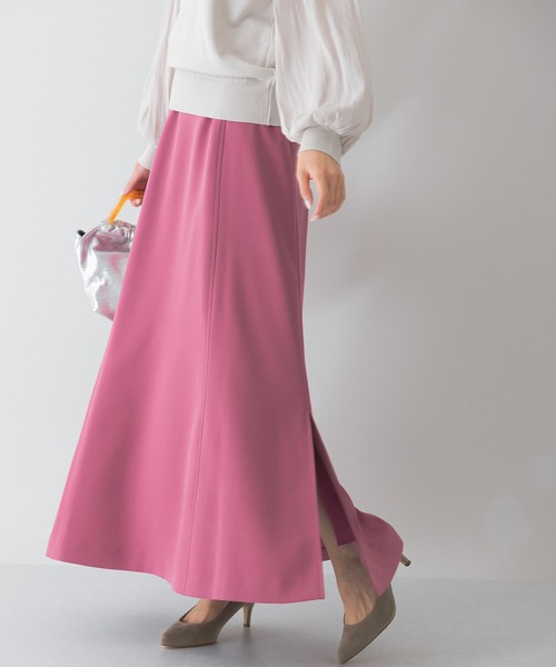 【目を惹く鮮やかなカラー展開が魅力のロングスカート】シンプルなトップスを合わせてもサマ見え間違いなしの一着。腰位置を高く見せてくれるハイウエストデザインと、裾にかけて広がるシルエットで女性らしさ溢れる仕上がりに。足さばきの良さと抜け感を演出するスリットがポイントです。トップスはインでもアウトでもバランス良く着用して頂けます。※この商品は、洗う程に風合いの良くなる素材を使用しています。ご購入直後や洗濯の際、色落ち・色移りをする恐れがありますので、ご購入後の着用前に一度お洗いください。※商品画像は、光の当たり具合やパソコンなどの閲覧環境により、実際の色味と異なって見える場合がございます。予めご了承ください。※商品の色味の目安は、商品単体の画像をご参照ください。-----------------------------透け感:なし伸縮性:なし裏地:あり光沢:なしポケット:あり-----------------------------