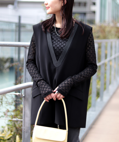 スタイリングにプラスするだけでメリハリをつけてくれるベスト。レイヤードしやすいゆったりとしたサイズ感なので、まだ寒い時期はニットの上から、春夏はカットソーやシャツにレイヤードして楽しむことができます。スタイリングの幅が広がる一着です。同素材のパンツとセットでも着用していただけます。(22030701550610 J-ダブルクロスステッチパンツ)※追加品番がございます。22011701550610 《追加予約》J- ダブルクロスベスト※取り扱いについては、商品についている洗濯表示でご確認ください。※店頭・外での撮影画像は、光の当たり具合で色味が違って見える場合があります。商品の色味は、スタジオ撮影の画像をご参照ください。**********************透け感:なし裏地:あり伸縮性:なし光沢感:なし生地感:普通生地の厚さ:普通**********************【スタッフ着用コメント】《スタッフ minori》年齢:20代後半/身長:161cm/体型:痩せ型/普段サイズ:S・M/着用サイズ:フリーサイズサイズ感:身幅はゆったりしていてインナーを変えて楽しむことができます。素材感:さらっとしていて、きれい見えするダブルクロス素材です。着心地:重さは感じないので、ストレスフリーな着心地です。**********************モデルサイズ:H161 着用サイズ:フリー本体:手洗い可能