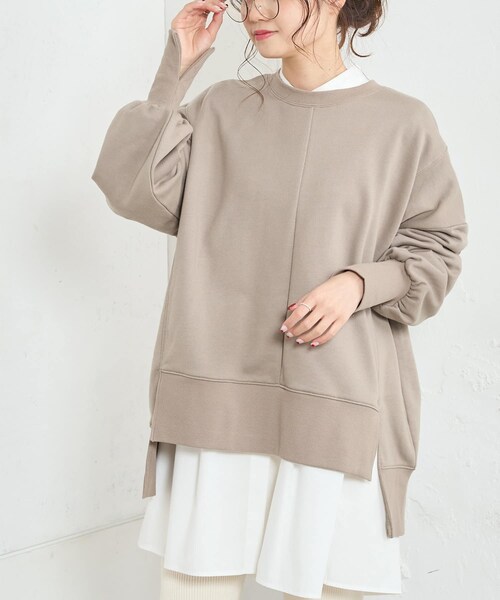 ピュアルセシン 2022 spring collection【Loose andclassical】リラックス感のあるルーズな着こなしや、今シーズンらしいミニマムでユーティリティな要素と素朴かつ巧みなハンドクラフト的なものとの融合させたスタイリングの提案◇シンプルな中に、カッティングデザインが光るキレイめスウェット◇●デザインシンプルなデザインで日々のワードローブを豊かにするビッグスウェット。体が泳ぐビッグシルエットでラフな着心地。ゆとりをもたせた袖に、長細いリブをつけることで手首を細く華奢に演出しカジュアルになりがちなスウェットをキレイめに着回すことができます。●カラー展開オートミール/ベージュ系/スミクロの3色展開。●素材柔らかく伸縮性がある、ポリエステルとコットンのブレンド素材を使用。●スタイリングカジュアルなデニムパンツがもちろん、イージーパンツと相性良くキレイめなスラックスやマーメイドスカートとも好相性◎春アウターのインナーとしても使いやすく、長いシーズン活躍可能なアイテムです。===============================透け感:なし裏地:なし伸縮性:あり光沢感:なし生地の厚さ:普通【スタッフコメント】年齢:20代前半/身長:152cm/普段着用サイズ:Mサイズサイズ感:お尻がすっぽり隠れるワイドシルエット。リブがきゅっと絞られているので細見えします。素材感:伸縮性がありドライタッチな触り心地です。===============================※撮影場所やお使いのモニター環境により若干お色味が異なる場合がございます。特にロケの撮影では明るく見える傾向にございます。※予約商品はサンプルで撮影をしております。若干の仕様が変更になる場合がございますので予めご了承の上ご注文くださいますようお願いいたします 。