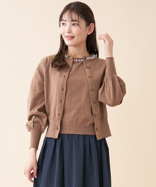 << POINT >> ■単体にもセットにも使えるニットアンサンブル 長袖カーディガンと半袖のインナーがセットになったハイゲージのニットアンサンブル。それぞれシンプルなシルエットなので単体でも活躍してくれます。 ■ネックラインのパールが上品なポイント カーディガンとインナーにはそれぞれネックラインに上品なパールモチーフをトッピング。ネックレス要らずで上品な印象に。 ■袖口と裾のリブ編みがすっきりとしたシルエットに カーディガン、インナーそれぞれの袖口と裾はリブ編みに切り替え、すっきりとしたシルエットに。カーディガンはさらにロングリブにすることでふんわりとしたフェミニンなスリーブシルエットにもメリハリをプラス。 ■自宅でケアのできるウォッシャブル対応 それぞれハンドウォッシュ可能なのがデイリーに使える嬉しいポイント。 ********** 着用シーズン:初春~春 ケア方法:ウォッシャブル・ドライクリーニング 生地の伸縮性:ややあり 生地の厚さ:普通 透け感:なし 裏地:なし ********** ※定価(税込)は、2022年06月24日のセール開始前の店舗における販売価格です。 2:肩幅40.5、バスト96、袖丈52、ゆき丈-、着丈-、身丈53.5、肩幅36、バスト86、袖丈18.5、ゆき丈-、着丈-、身丈52