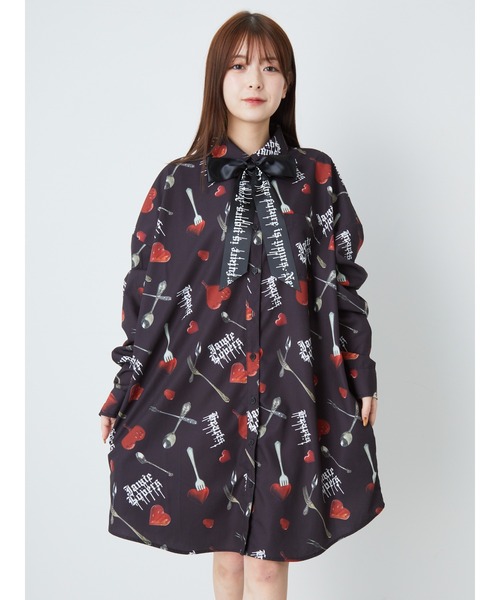 ガーリーな魅力を高めるプリントが好アクセントのシャツが登場です♪ モノトーンのルックスに、真っ赤なハートが映えて、愛らしさがバツグンの一枚◎ 旬なルーズシルエットは、女の子らしい華奢見せを叶えて、ワンピ風に着れば、フェミニン度がUPします。衿元にリボンをプラスすれば、顔まわりを可愛くアップデート! どこから見てもキマる逸品です☆ユニセックスでご利用いただけます