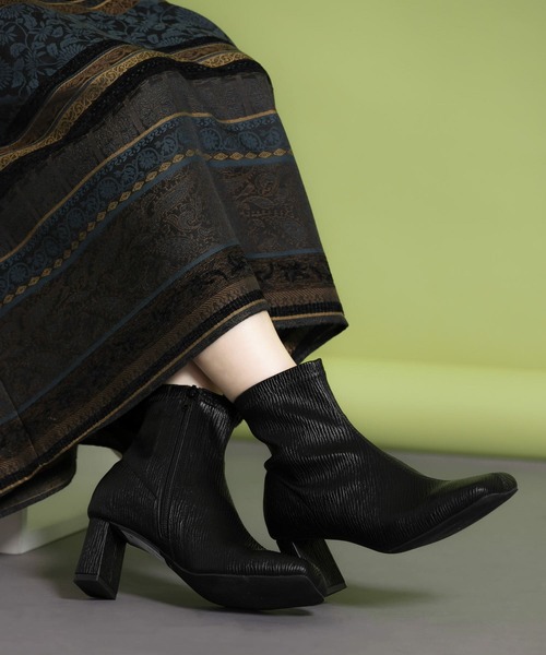 【エンボス加工を施した表情感あるブーツ】 ベーシックなシルエットのブーツにエンボス加工を施すことで表情のある仕上がりにした1足。どんなスタイリングにも好相性なので大活躍間違いなしです。 ====================================== お気に入り登録のおすすめ ■商品のお気に入り登録 再入荷・ラスト1点、セールの通知などを受け取ることができます。 ■ブランドのお気に入り登録 新商品や再入荷、クーポン情報などお得な情報を受け取ることができます。 ====================================== ※サイズ詳細は、当社が独自で計測したサイズです。 【スタッフ着用コメント】 試着サイズ : 36 薄地の靴下で少しゆとりも持って履けました。厚地の靴下ですと、ちょうどピッタリでした。 [スタッフデータ] 普段の着用サイズ : 23cm 足長 : 23cm 足囲 : 20cm 足幅 : 狭め ※履き心地には個人差がございますので、あくまでも目安としてご覧ください。 ※靴箱破損につきましては、商品に不良が無い場合に限り出荷させていただいております。予めご了承ください。 ※商品画像は、光の当たり具合やパソコンなどの閲覧環境により、実際の色味と異なって見える場合がございます。予めご了承ください。 ※商品の色味の目安は、商品単体の画像をご参照ください。