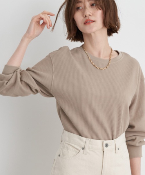 表面感のあるワッフル素材が、カジュアルなニュアンスを添えるプルオーバー。 丸みのあるラウンドヘムも、女性らしい柔らかな表情をオン。締め付けのないシルエットで、気負いなくスタイリング出来ます。 シンプルな無地タイプで着回し力も高く、ワードローブの定番アイテムとしても重宝しそう。 透け感[有り] 裏地[無し] 伸縮性[やや有り] 光沢感[無し] 生地の厚さ[薄手] 付属品[無し] ポケット[無し] ● earth music&ecology ● (アース ミュージック&エコロジー) 人とライフスタイルと環境に寄り添い、 エントリーアイテムとトレンドアイテムをMash upさせ、 いつでも心地よく過ごせる、自由な大人の女性を表現します。 ▼ 商品のお気に入り登録がおすすめです ▼ 商品ページ内のハートマークをクリック。完売時の再入荷や、最後の1点の通知、コーディネート画像がアップされたとき、お得なお値下げの際の通知を受ける事ができます。 【お知らせ】ページでも通知が確認できます。