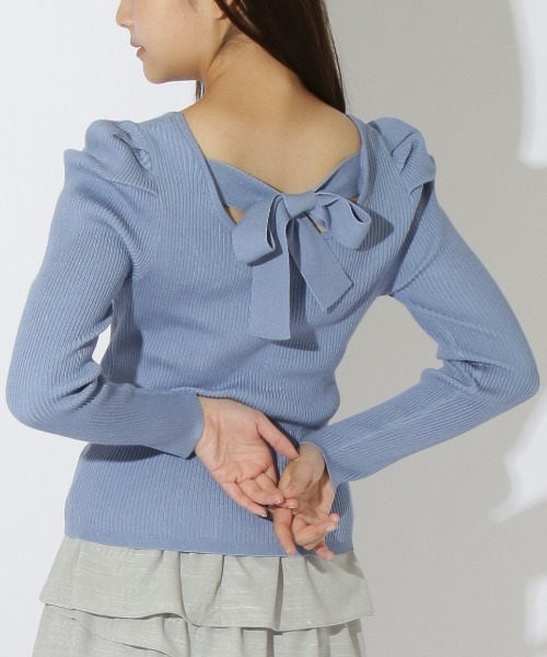 人気のバックリボンニットが春らしいブライトカラーになって新登場! 大きめのバックリボンデザインがアクセントになり、華奢魅せ効果抜群のリブニットです。 パワーショルダーとほどよく開いたネック部分が首元をきれいに見せてくれる◎ リブニット生地なので温かみがあり、分厚すぎない生地が春先まで着用できるのも嬉しいポイント。 【styling】 マーメイドスカートやヘムスカートと合わせると今季らしいトレンディなコーディネートが完成します。 シンプルなトップスなのでショートパンツやミニスカート、ロングパンツでも合わせられる万能トップスです。 -------------------------- 透け感:なし 裏地:なし 伸縮性:あり 生地の厚さ:普通 --------------------------- F:(00):着丈55cm 身幅34cm 袖丈61.5cm
