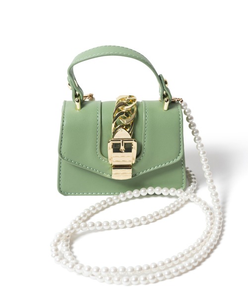アクセサリー感覚で持つAvenir bag(アヴェニールバッグ)。リップや除菌スプレーなどちょっとした小物を忍ばせて持ち歩くのにピッタリ。チェーンはパールで、バッグ自体がアクセサリーのように全体のコーディネートを華やかにしてくれます。